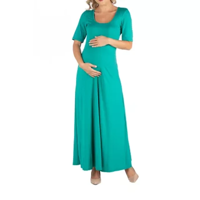 24seven Comfort Apparel Womens Maternity 3/4 Sleeve Fit + Flare Dress