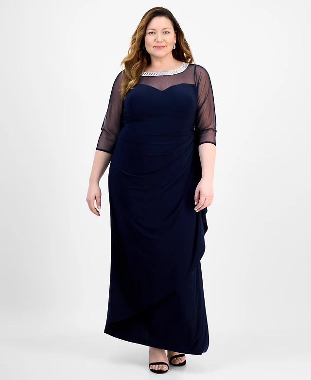 Alex Evenings Plus Draped Cold-Shoulder Evening Dress