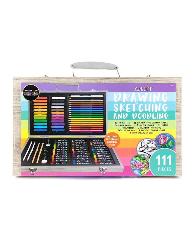 Art 101 Drawing, Sketching Doodle Wood Art Set, 111 Pieces