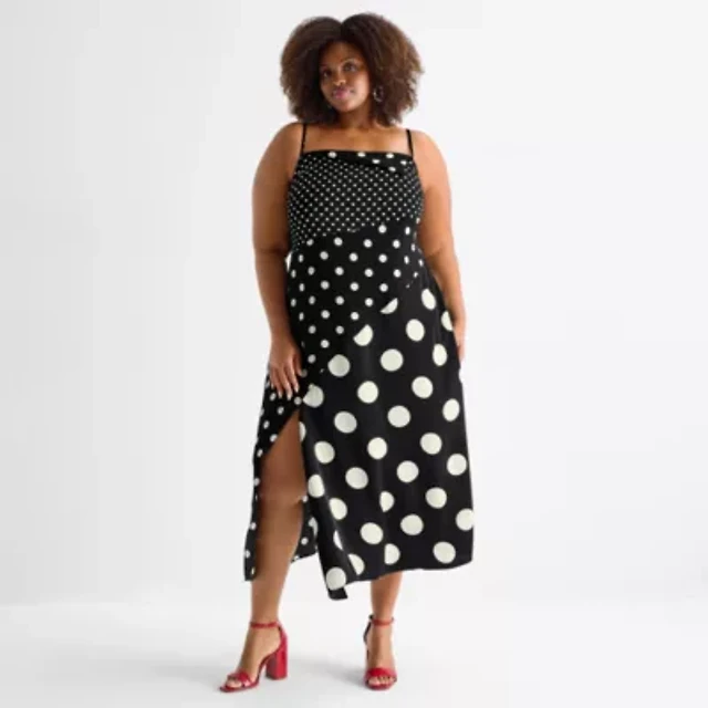 Ashley Graham Womens Plus Sleeveless Dots Bodycon Dress