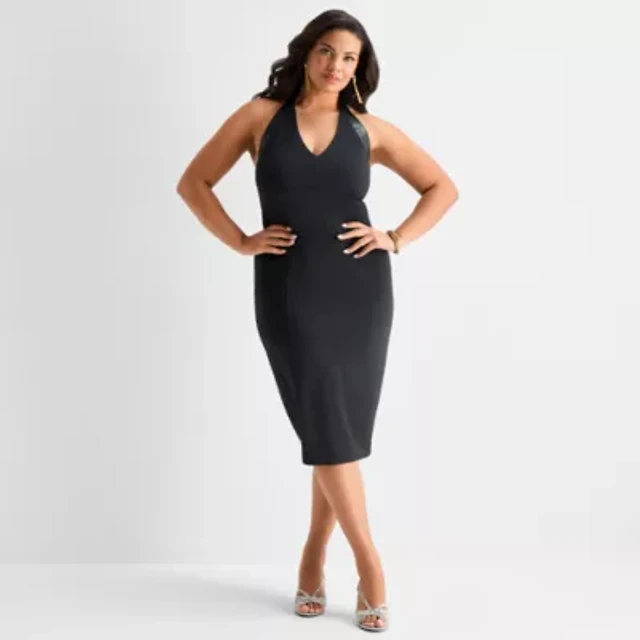 Ashley Graham Womens Plus Sleeveless Midi Bodycon Dress