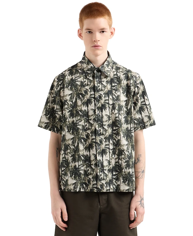 A|X Armani Exchange Men's Long Sleeve Poplin Allover Logo Woven Shirt