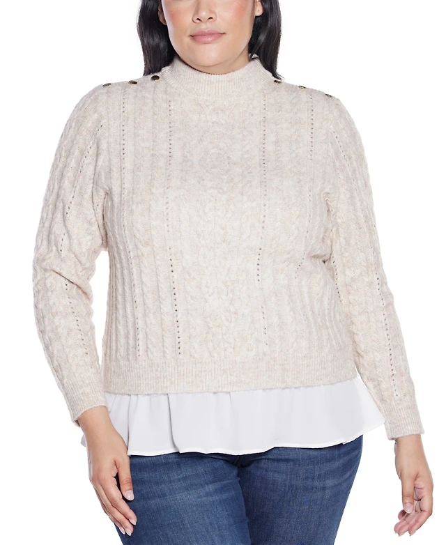 Belldini Plus Size Rhinestone-Neckline Two-Fer Sweater