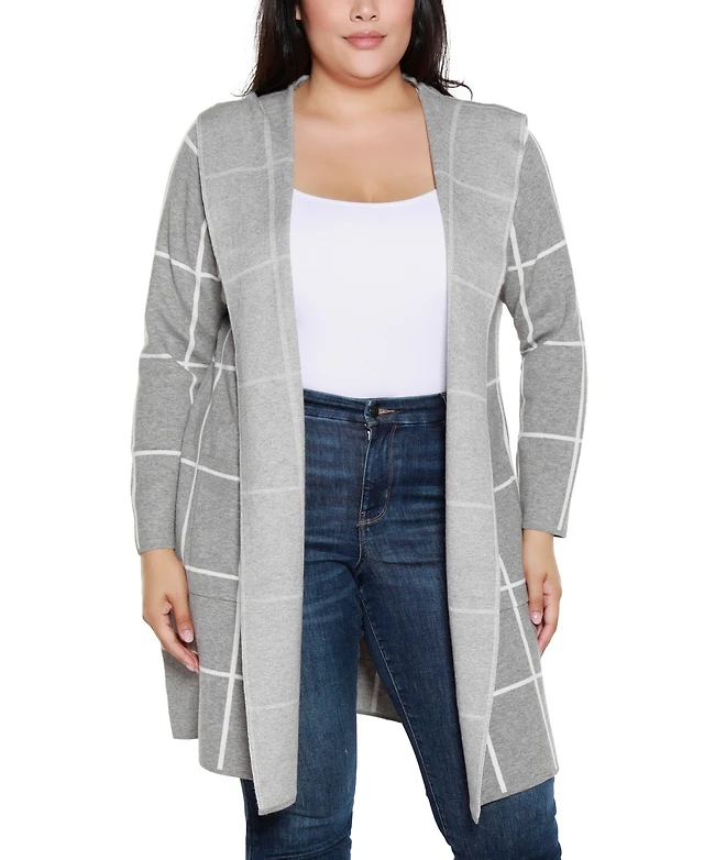 Belldini Plus Lurex Jacquard Open-Front Cardigan Sweater