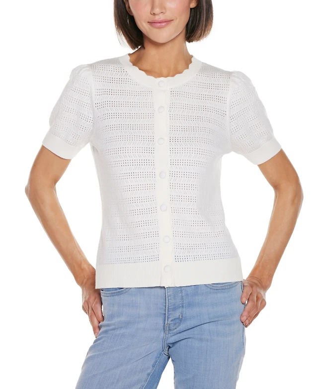 Belldini Women's Puff Sleeve Embellished Neckline Sweater