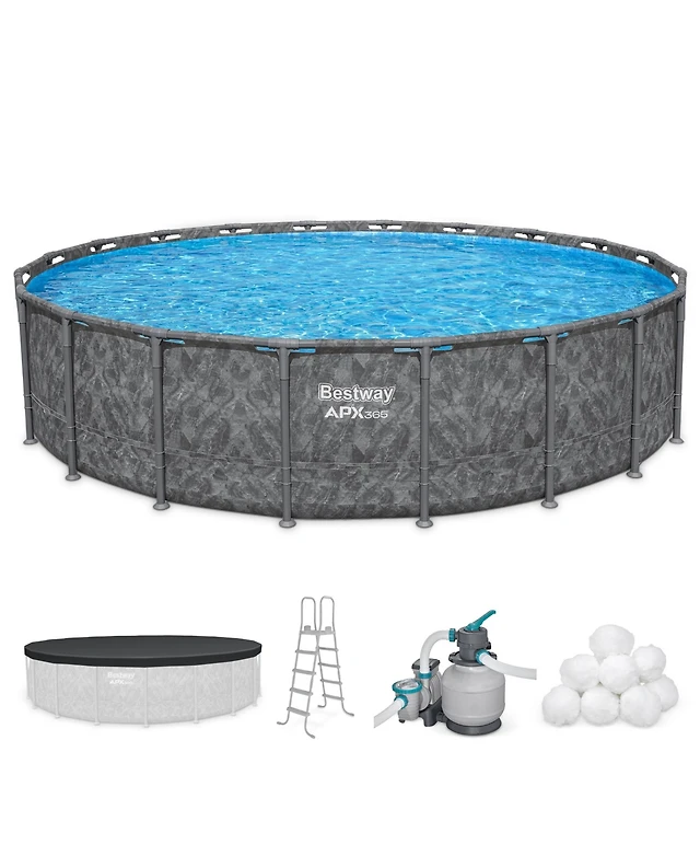 Bestway Apx 365 18' x 9' x 52" Rectangular Above Ground Swimming Pool Set, Gray