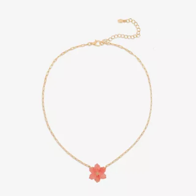 Bijoux Bar Gold Tone Womens Pink 15 Inch Statement Necklace
