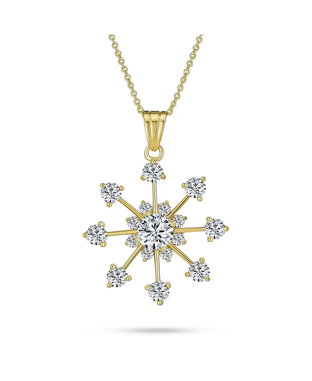 Bling Jewelry Holiday Party Cubic Zirconia Solitaire Cz Accent Christmas Frozen Winter Sparkling Dainty 3 Multi Snowflake Necklace Sterling Silver