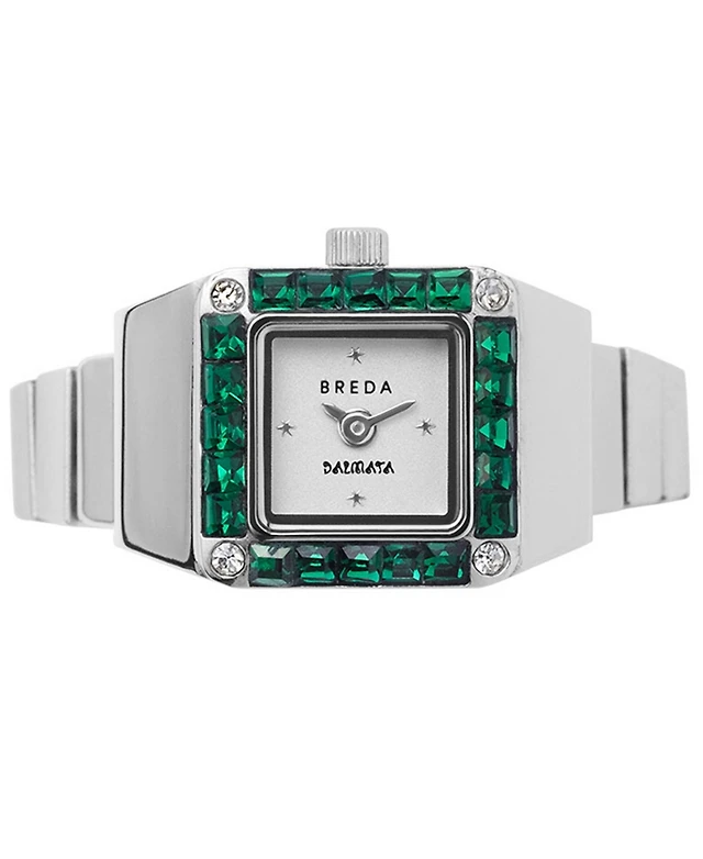 Breda Women's x Dalmata Time Ring Emerald Crystals and Stainless Steel Expandable Ring Watch, 15mm
