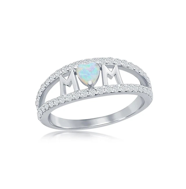 Caribbean Treasures Sterling Silver Synthetic Mom Opal heart & Cz Ring