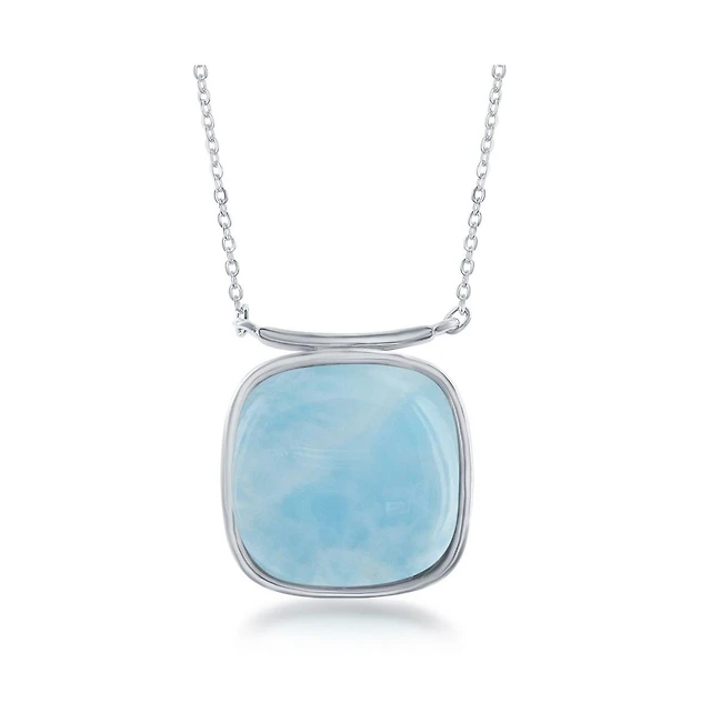 Sterling Silver Rectangle & Pearshaped Larimar Necklace