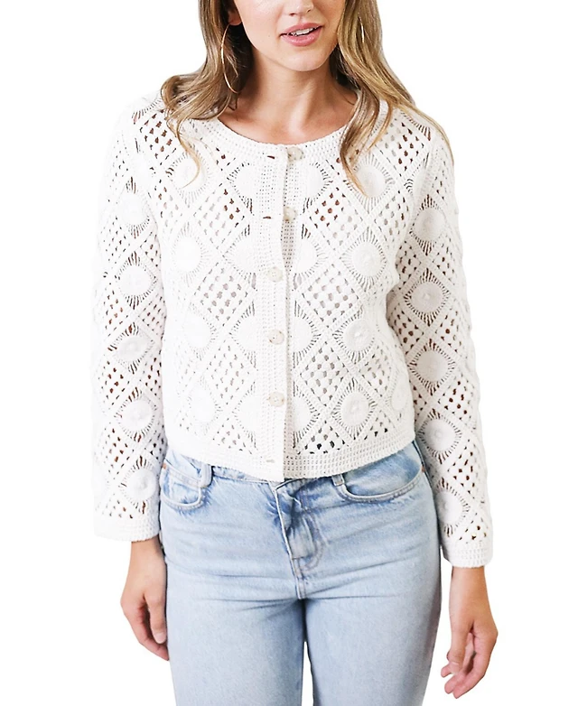 Central Park West Women's Clover Novelty Stitch Cardigan