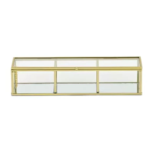 Cheungs Glass Box With Two Padded Compartments Jewelry Organizer