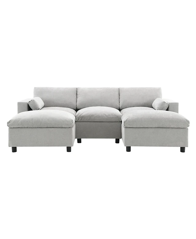 Clihome 106.3-inch V-Shape Modular Sectional Sofa with Throw Pillows