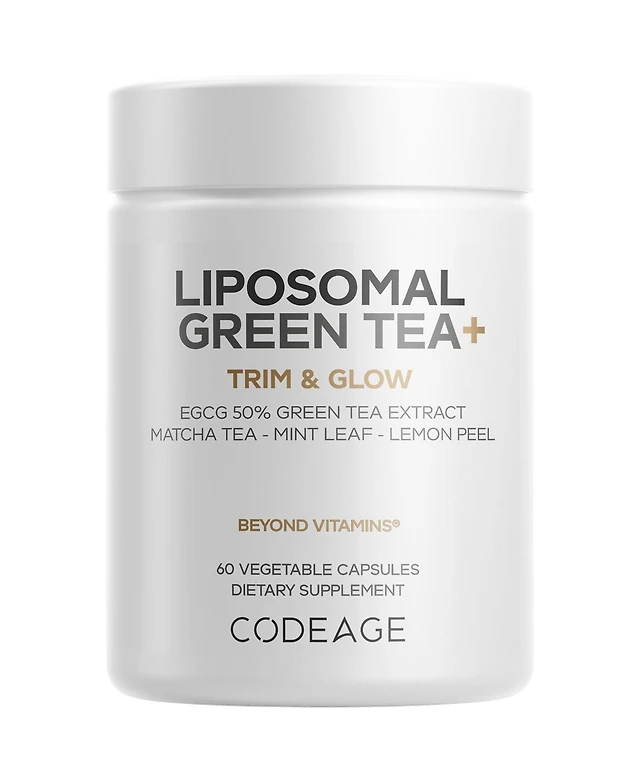 Codeage Liposomal Green Tea+ Egcg 50% Green Tea Extract, Matcha Green Tea Powder, Peppermint Leaf, Lemon Peel, Liposomal Delivery