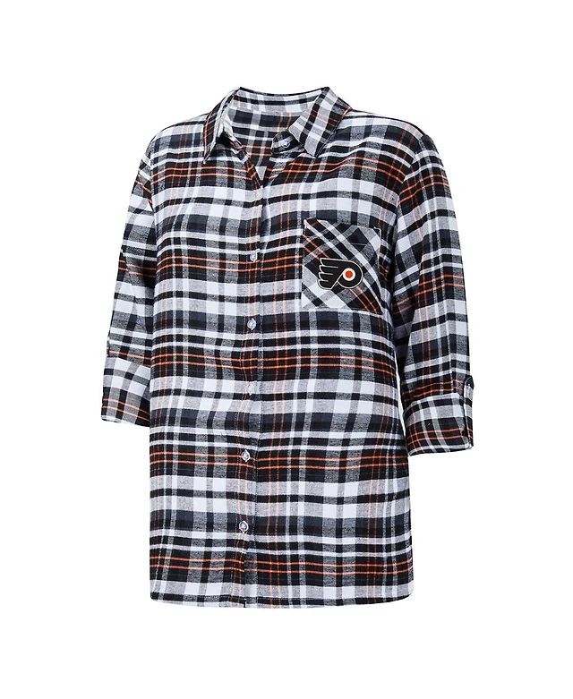 Women's Concepts Sport Black Philadelphia Flyers Mainstay Flannel Full-Button Three-Quarter Sleeve Nightshirt