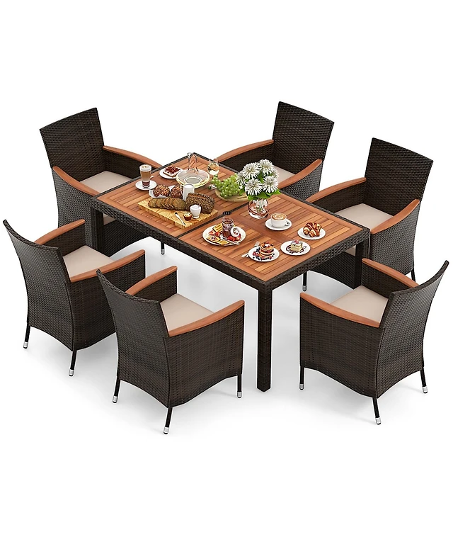 Costway 8PCS Outdoor Patio Rattan Furniture Set Acacia Wood Frame Sofa Loveseat Garden