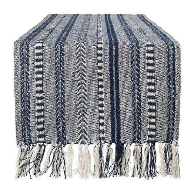 Design Imports Black Dobby Stripe Ribbed Table Runner