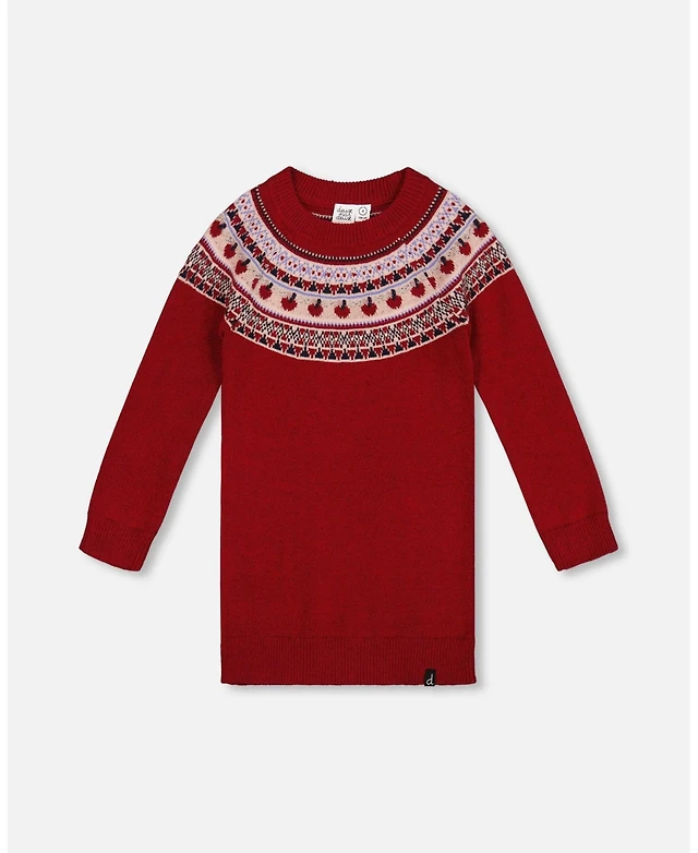 Deux par Deux Baby Girl Jacquard Sweater Dress with Ribbed Skirt Jade Green - Baby