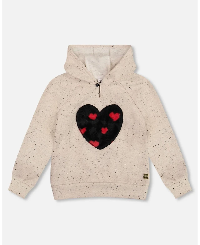 Deux par Girl Glittering Beige French Terry Hoodie with Heart Applique - Toddler|Child