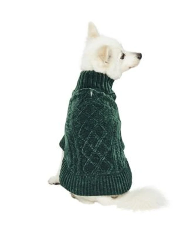 Dogs Cats Co. Ultra Soft Cozy Chenille Cable Knit Dog Sweater Turtleneck With Leash Opening