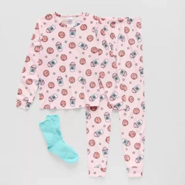 Dream Big Peace Out Little & Kid Girls Velour Crew Neck Long Sleeve 3-pc. Pajama Sets