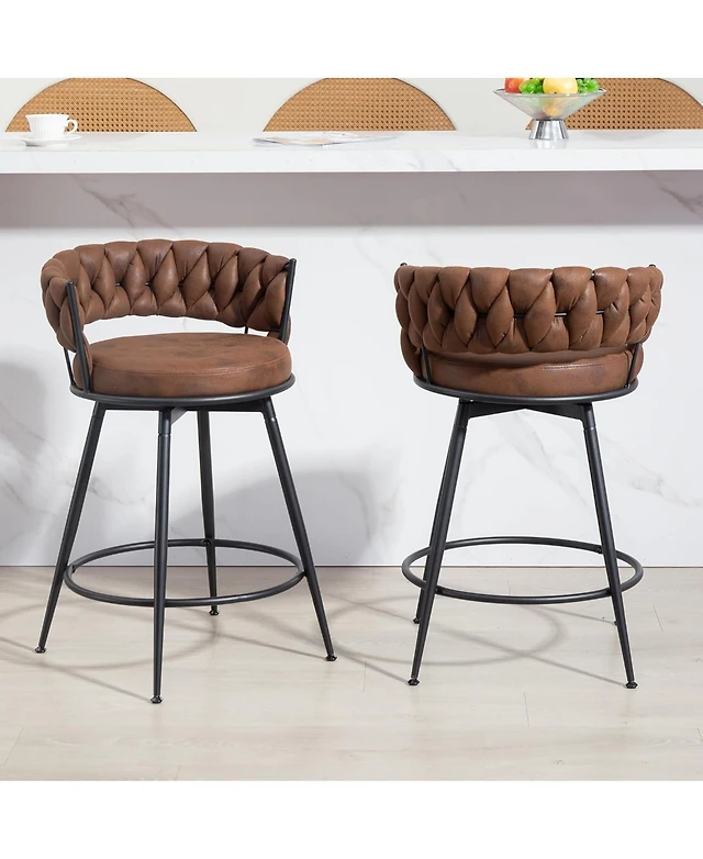 Dyhome 28 inch Bar Stools Set of 2, Modern Counter Height Stools, 360° Swivel Suede Fabric Stool Chairs with Woven Back and Footrest