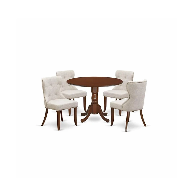 East West Furniture 5-Pc Dining Room Set- 4 Parson Dining Chairs with Dahlia Linen Fabric Seat and Button Tufted Chair Back