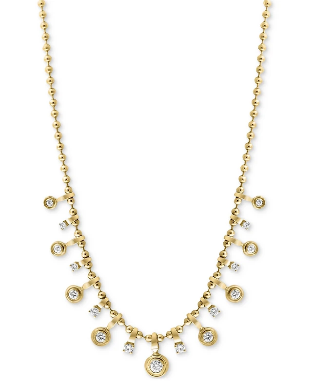 Effy Lab Grown Diamond Oval Bezel Beaded 18" Pendant Necklace (2 ct. t.w.) in 14k Gold