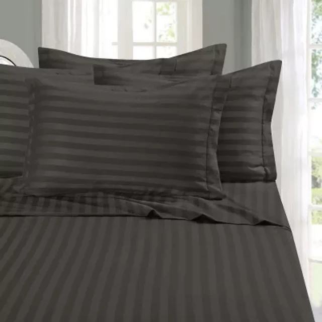 Elegant Comfort 6-Piece Dobby Stripe Wrinkle Free Sheet Set with Extra Pillowcases - Easy Care
