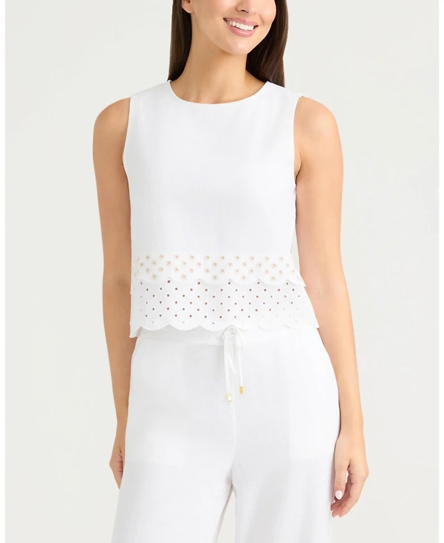 Ellen Tracy Women's Sleeveless Top with Eyelet Detailing