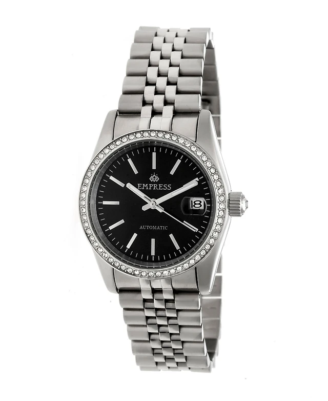 Empress Constance Automatic, Silver Case, Black Dial, Silver Stainless Steel Watch 37mm