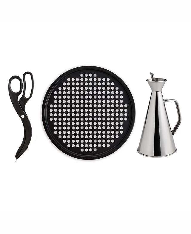 Fante's 3-Piece Crispy Pizza Pan with Pizza Scissors and Olive Oil Can Set, The Italian Market Original Since 1906