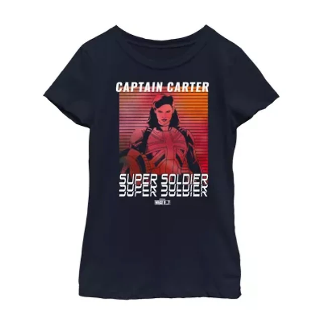 Captain Carter Little & Big Kid Girls Crew Neck Short Sleeve Slim Fit Marvel Graphic T-Shirt