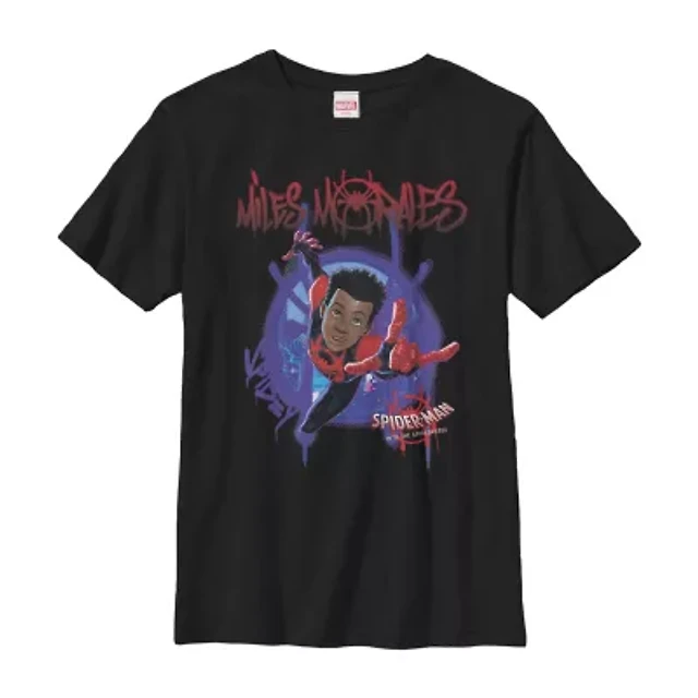 Miles Morales Little & Big Kid Boys Crew Neck Short Sleeve Slim Fit Spiderman Graphic T-Shirt