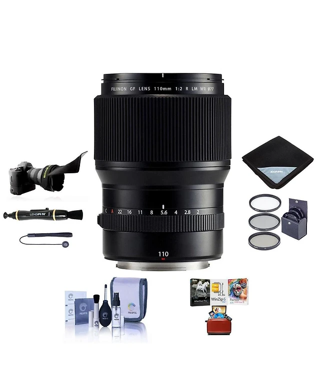 Fujifilm Fujinon Gf 110mm f/5.6 T/S Macro Lens, Bundle with 72mm Filter Kit, Lens Wrap, Lens Shade, Lens Cleaner, Cleaning Kit, Lens Cap Tether and