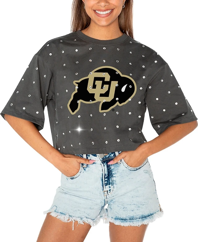 Gameday Couture Women's Gray Colorado Buffaloes Go Time Rhinestone Crop T-Shirt