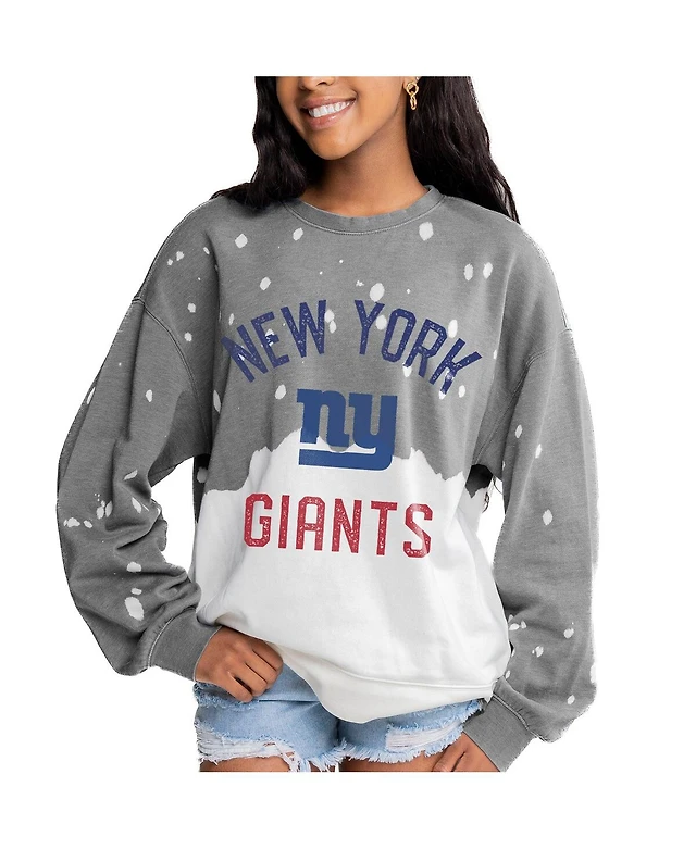 Gameday Couture Women's Gray New York Giants Oversized Coin Toss Faded French Terry Tri-Blend Pullover Sweatshirt