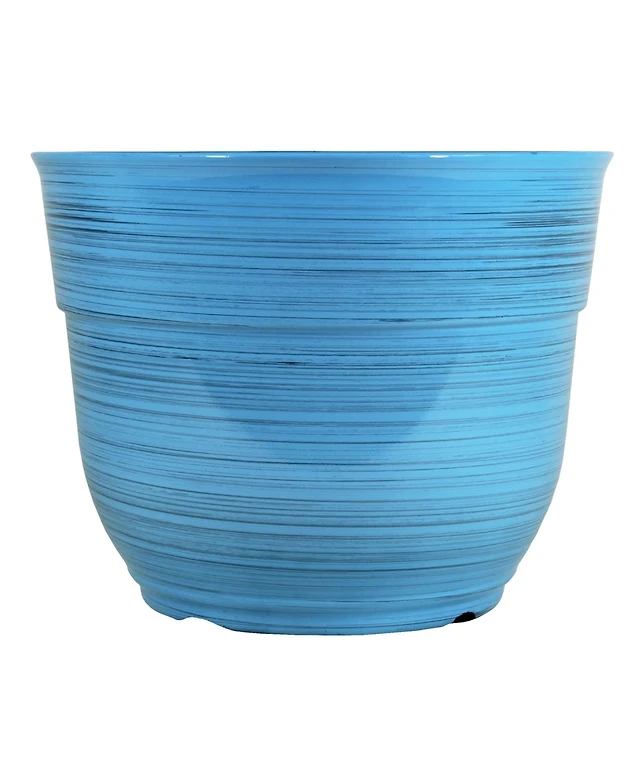Garden Elements Glazed Brushed Happy Large Plastic Planter Dark Aqua 15 Inch