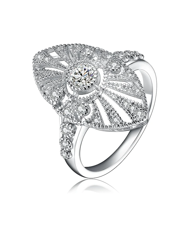 Sterling Silver Clear Round Cubic Zirconia Modern Ring