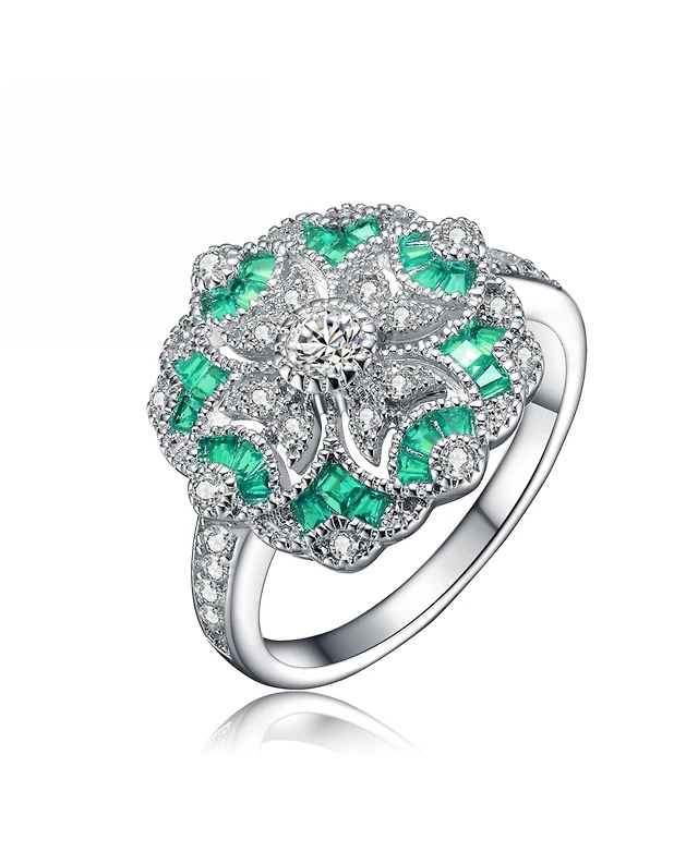 Sterling Silver Rhodium Plated with Green Cubic Zirconia Bypass Ring