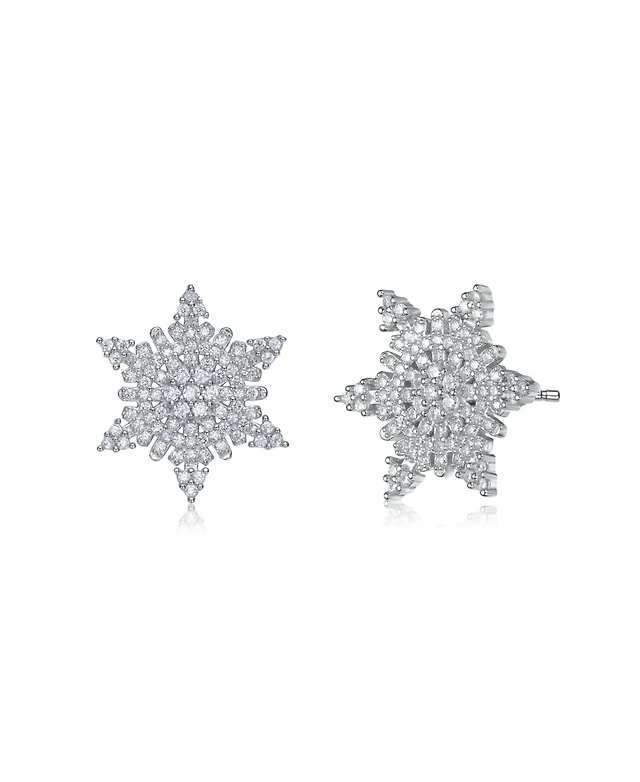 Cubic Zirconia Sterling Silver Snowflake Drop Euro Earrings