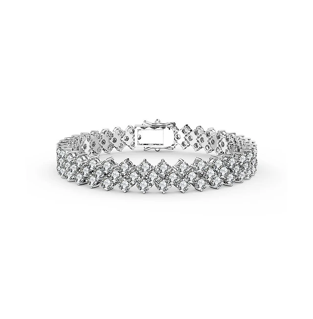 Rachel Glauber White Gold Plated with Clear Cubic Zirconia Three Row Bracelet