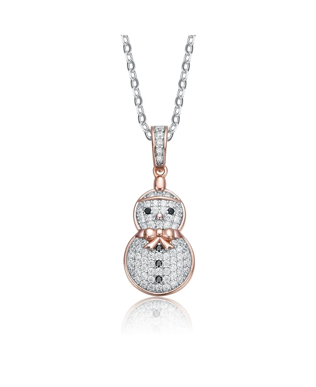 GiGiGirl Sterling Silver Black & White Cubic Zirconia Snowman Pendant Necklace