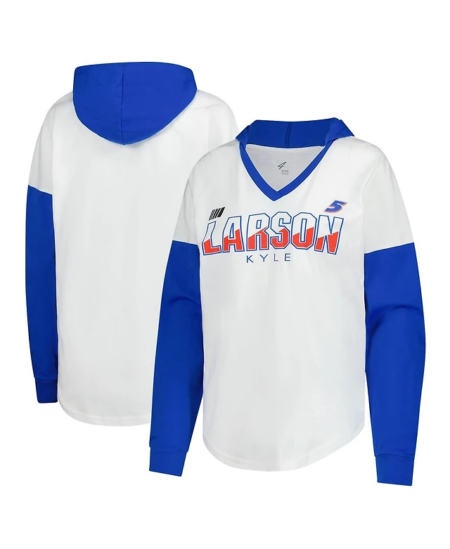 G-iii 4Her by Carl Banks Women's White/Royal Kyle Larson Bench Player Oversized Long Sleeve Hoodie V-Neck T-Shirt