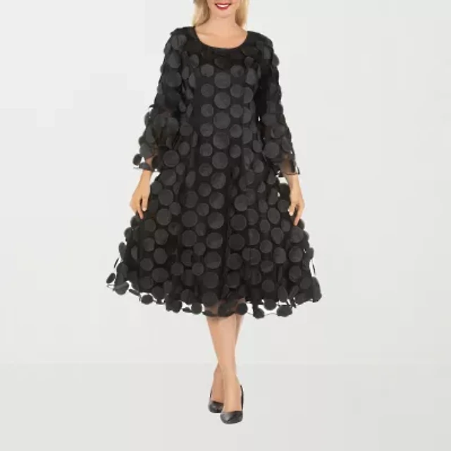 Giovanna Signature Womens Long Sleeve Midi Polka Dot A-Line Dress
