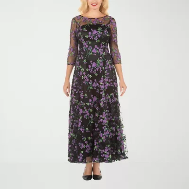 Giovanna Signature Womens Plus 3/4 Sleeve Midi A-Line Dress