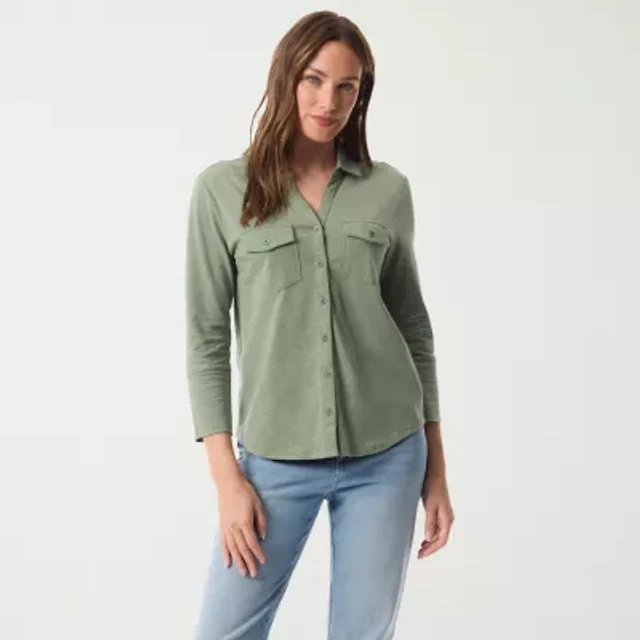 Gloria Vanderbilt Ashten Womens 3/4 Sleeve Regular Fit Button-Down Shirt