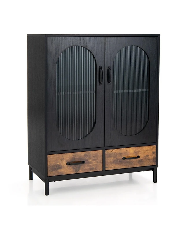 Gouun Narrow Console Table with Drawers and Open Storage Shelf