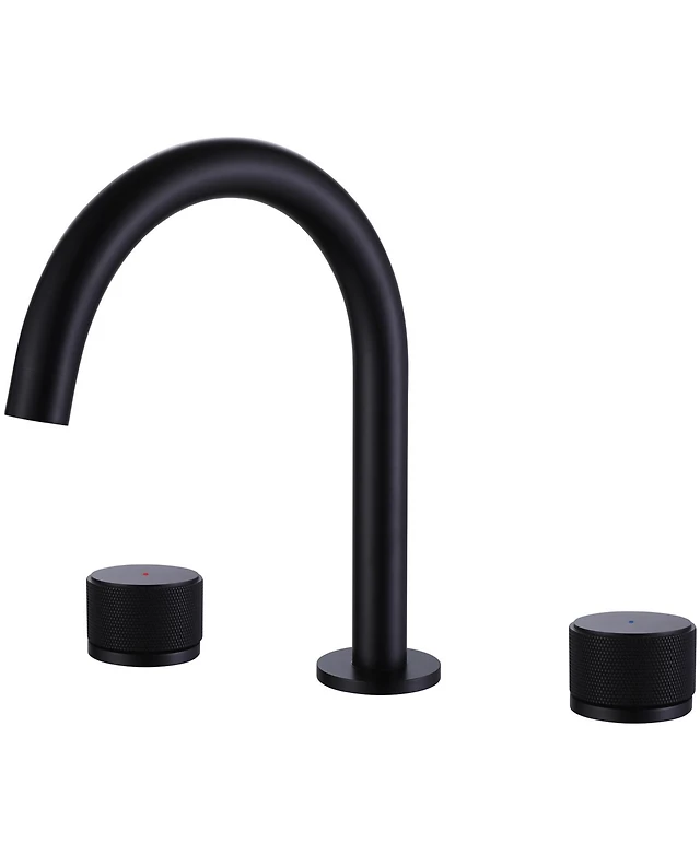8 in. Widespread Double Handle Black Bathroom Faucet Set 3 Holes Vanity Sink With Metal Drain In Matte Black